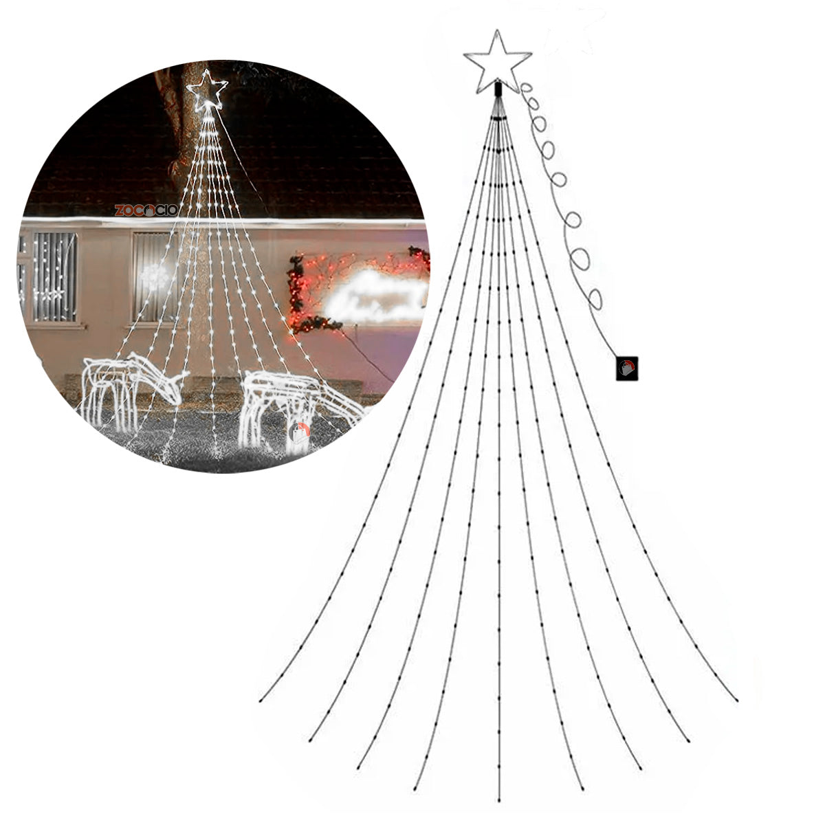 - Diseño tipo cascada con estrella superior y tiras luminosas colgantes.