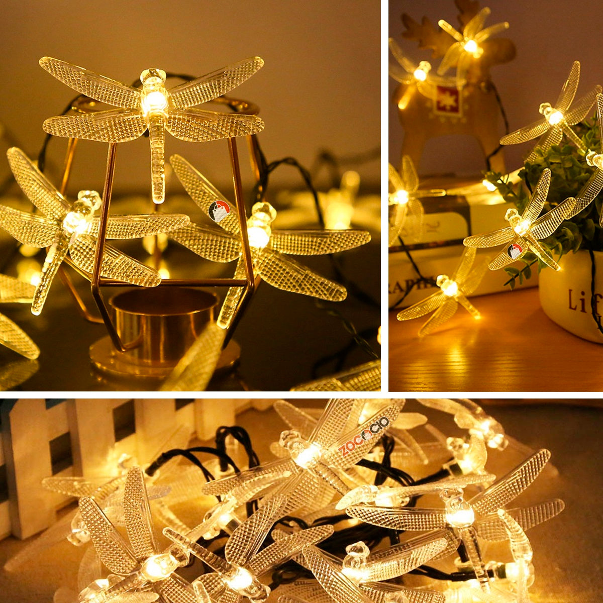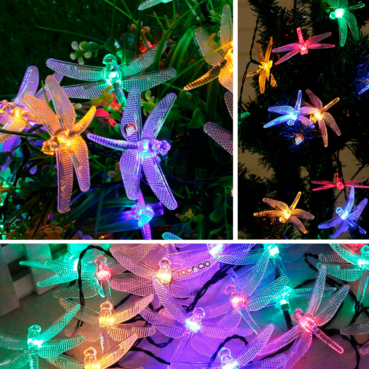 - 50 luces LED con forma de libélula, ideales para ambientes navideños.